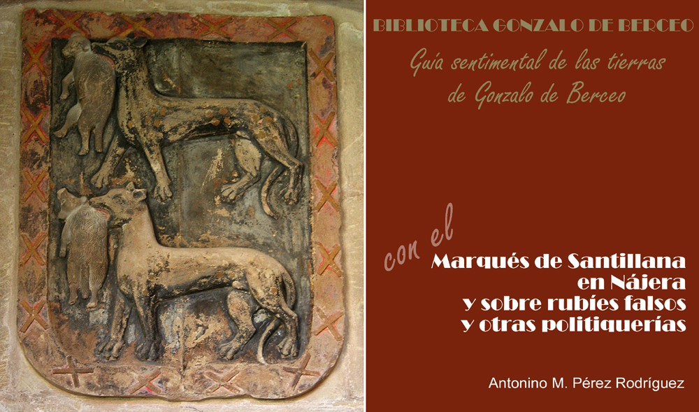7.1.- La leyenda del rubí del “Principe Negro”.Ya que hablamos de la batalla de Nájera, me gustaría acabar con la leyenda del “rubí del Principe Negro” que adorna la inglesa Corona Imperial del Estado. La verdad es que es una espinela, y que Edward Woodstock, Príncipe de Gales y heredero de Eduardo III de Inglaterra la recibió de manos de Pedro el Cruel de Castilla en pago por la ayuda prestada en la batalla de Nájera del 3 de abril de 1367. Pedro el Cruel se lo había robado con otras muchas y valiosas joyas, antes de asesinarlo, a un musulmán, pretendiente al trono granadino que fue a pedirle ayuda. Todo ello está muy bien contado en las Crónicas de Pero López de Ayala. La famosa espinela nada tuvo nunca que ver con Santa María la Real. 7.2.- Cuando en política se espera resolver grandes problemas no haciendo nada.Al Marqués de Santillana no le faltaron descendientes tan agudos de ingenio como él. Va una muestra del talento de don Diego Hurtado de Mendoza. En plena rebelión de los moriscos granadinos, Felipe II no sabe qué decisión tomar y decide tomárselo todo con calma. Modesto Lafuente en su Historia General de España (1854) nos plantea muy bien la situación —tan parecida a la que ahora mismo padecemos en la política nacional y en la internacional—: