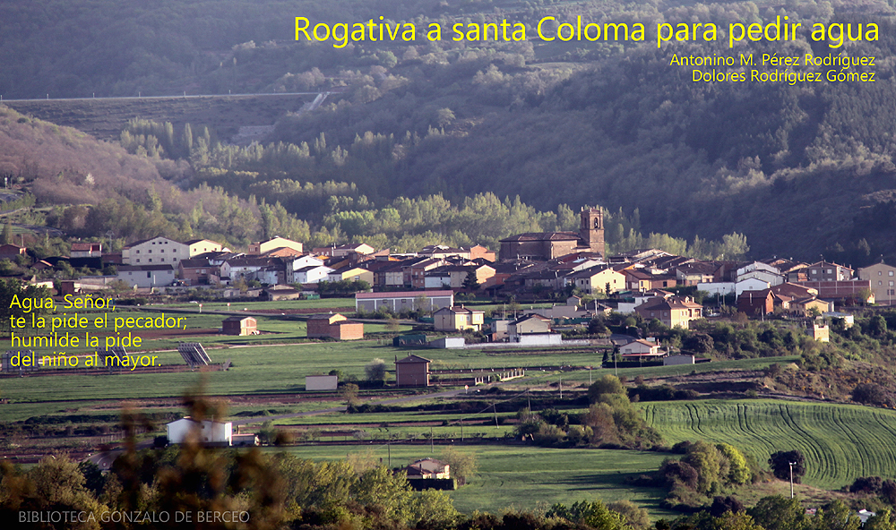 La Rogativa a santa Coloma para pedir agua viene de antiguo y tiene su origen en la eficaz promoción que los cluniacenses hicieron de la devoción a la santa, mártir francesa muy mimada por ellos en su patria y fuera de ella, desde el viejo monasterio colomino, restaurado el 923[4] y convertido por donación de la reina doña Estefanía[5] en decanía aneja a Santa María La Real de Nájera, convertida el 1070 en priorato cluniacense por Alfonso VI.