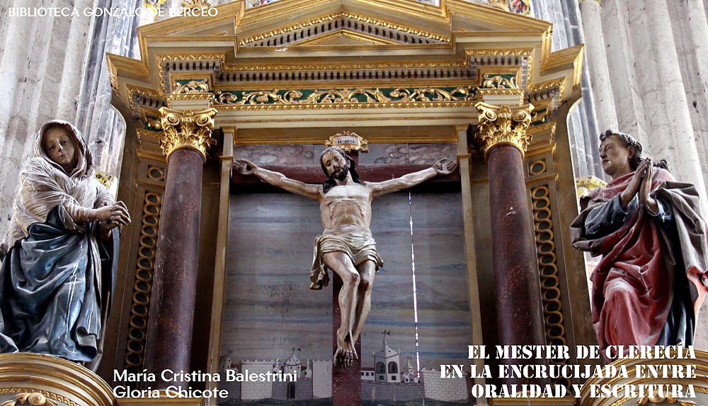 Andrachuk, G. P. "Berceo's Sacrificio de la Misa and the clérigos ignorantes". Hispanic Studies in Honor of Alan Deyermond: A North American Tribute. Madison: Hispanic Seminar of Medieval Studies, 1986: 15-30. Austin, J. L. How to do things with words. New York: Oxford University Press, 1962. Bajtin, Mijail. "The Problem of Speech Genres". Speech Genres and Other Late Essays. Texas: University of Texas Press, 1988: 60-102. Bäuml, F. "Varieties and consequences of medieval literacy and illiteracy". Speculum 55.2 (1984): 1-15. -- ."Medieval Texts and the Two Theories of Oral-Formulaic Composition: a Proposal for a Third Theory". New Literary History XVI (1984): 31-49. Berceo, Gonzalo de. Los Milagros de Nuestra Señora. Ed. Brian Dutton London: Tamesis, 1971. -- . Vida de Santo Domingo de Silos. Ed. Teresa Labarta de Chaves. Madrid: Castalia, 1980. Bowra, Cecil. Heroic Poetry. London: Me Millan, 1962. Cañas Murillo, Jesús, ed. Libro de Alexandre. Madrid: Editora Nacional, 1978. Caso González, José. "Mester de juglaría/mester de clerecía: ¿dos mesteres o dos formas de hacer literatura?". Berceo 94-95 (1978): 255-263. Clanchy, M. T. From memory to written record, England, 1066-1307. Cambridge: Cambridge University Press, 1979. Corbella, Dolores, ed. Libro de Apolonio. Madrid: Cátedra, 1992. Deyermond, Alan. "Mester es sen peccado". Romanische Forschungen LXXVII (1965): 111-116. -- . "La literatura oral en la transición de la Edad Media al Renacimiento". Edad de Oro VII (1988): 21-32. Dominguez Caparros, José. "Literatura, actos de lenguaje y oralidad". Edad de Oro VII (1988): 5-13. Foley, John M. "Orality, Textuality and Interpretation". A. N. Doane-Carol Braun Pasternack. Vox lntexta. Orality and Textuality in the Middle Ages. Wisconsin: University of Wisconsin Press,1991. Gybbon-Monypenny, G.B. "The Spanish Mester de Clerecía and Its Intended Public: Concerning the Validity as Evidence of Passages of Direct Address to the Audience". Medieval Miscellany Presented to Eugéne Vinaver. Eds. F. Whitehead, A. Diverres, F. Sutcliffe. New York, 1965: 229-244. Havelock, Eric. Preface to Plato. Cambridge, Mass.: Harvard University Press, 1963. -- . "La ecuación oral-escrito: una fórmula para la mentalidad moderna". Comps. David Olson-Nancy Torrance. Cultura escrita y oralidad. Barcelona: Gedisa, 1995. Lord, Albert. The Singer of Tales. Cambridge, Mass.: Harvard University Press, 1960. Lotman, Jurij. Semiótica de la cultura. Madrid: Cátedra, 1979. McLuhan, Marshall. The Gutenberg Galaxy. Toronto: University of Toronto, 1962. [Versión castellana: La galaxia Gutenberg. Barcelona: Planeta-Agostini, 1985]. Musgrave, J. C. "Tarsiana and Juglaría in the Libro de Apolonio". Medieval Hispanic Studies Presented to Rita Hamilton. Ed. Alan Deyermond. London: Tamesis Books, 1976: 129-138. Ong, Walter J. Orality and Literacy: The technologizing of the word. London: Methuen, 1982. [Versión castellana: Oralidad y escritura. Tecnologías de la palabra. Buenos Aires: Fondo de Cultura Económica, 1993]. Parry, Milman. L'Epithéte traditionelle dans Homére. París: Société Éditrice Les Belles Lettres, 1928. -- ,. The Collected Papers of Milman Parry. Comp. Adam Parry. Oxford: Clarendon Press, 1971. Rico, Francisco. "La clerecía del mester". Hispanic Review 53 (1985): 1-23 y 127-150. Salvador Miguel, Nicasio. "'Mester de Clerecía', marbete caracterizador de un género literario". Ed. Miguel Garrido Gallardo. Teoría de los géneros literarios. Madrid: Arco Libros, 1988: 343-371. Stock, Brian. The Implications of Literacy: Written Language and Models of Interpretation in the Eleventh and Twelfth Centuries. Princeton, NJ.: Princeton University Press, 1983. Willis, R. S. "Mester de Clerecía: A Definition of the Libro de Alexandre". Romance Philology X (1956-57): 219-227. Zumthor, Paul. "Genése et évolution du genre". Grundriss der Romanischen Litteraturen des Mittelalters VI. 1. Heidelberg:Carl Winter, 1978:60-73. -- La lettre et la voix. De la "litterature" médiévale. París: Du Seuil, 1987. [Versión castellana: La letra y la voz. De la "literatura"medieval. Madrid: Cátedra, 1989].