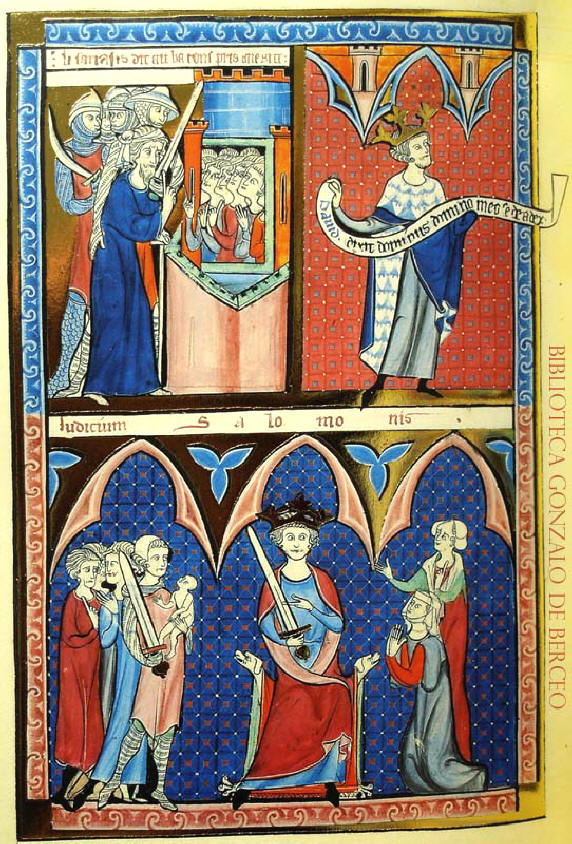 « Controbatli canciones » : 'inventadle canciones', entiende Spitzer, y entiende bien, salvo que 'controbar' no tiene forzosamente sentido colectivo. ¿Y cómo serán esas canciones? Irán acompañadas de salmos y de lecturas litúrgicas, y de otras acciones que es necesario comprender exactamente. Ni las bendiciones « comienzan 'Jube domine'... », ni « la palabra sones, que cierra la cuaderna vía, tiene en Berceo un claro significado : canciones » (Orduna, pág. 88). Jube domine \benediceré\ — lo dice bien Spitzer, pág. 53 (fin de la n. 7 de la página precedente) — es la fórmula por la cual el diácono o el lector piden la bendición del obispo o del sacerdote antes de iniciar el canto de una lección litúrgica. Sono (forma de bajísima latinidad) es el « nom donné à la seconde antienne des Vêpres, á certains jours de fêtes. C'est une antienne in forma responsi, avec un ou plusieurs versets... Cette antienne se retrouve aussi d'ordinaire au Matutinum, après Fantienne appelée Benedictiones ». Y Benedictiones es « le titre de Tantienne Benedictas es, Dominas Deus patrum nostrorum, que Ton chantait tres souvent au Matutinum... Parfois le nom est donné au cantique lui-meme 55 ». Bendiciones es, pues, el Canticum trium puerorum, el himno de los tres mancebos en el horno (Daniel, III, 56-88), canto bien conocido, citado en el Poema de Fernán González :