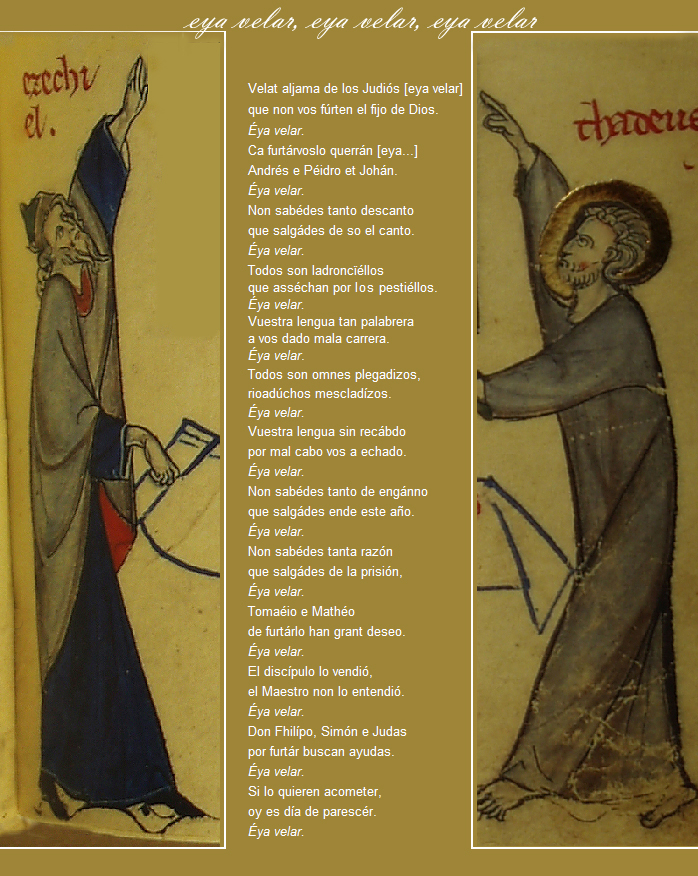 El esquema de la cantiga Eya velar es el mismo de la representación de pastores que se ejecutaba la víspera de Navidad, a laudes, en Toledo :