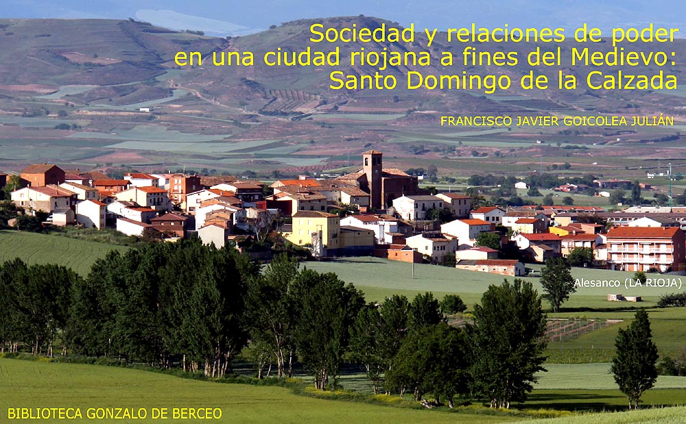 Desde la Alta Edad Media se desarrolla sobre el mar rural del Occidente europeo, un proceso urbanizador que también va a cristalizar en los reinos ibéricos peninsulares 1. Así sucede en el reino castellano-leonés, donde la positiva influencia del Camino de Santiago favorecerá de forma muy importante el desarrollo urbano de las zonas que atravesaba 2 En este sentido, no cabe duda de que la ruta Jacobea a su paso por el territorio riojano, imprimió a los núcleos de población situados en torno al Camino un impulso decisivo en su conformación urbana3. La documentación conservada para los siglos xi al xm nos permite comprobar una diversificación de los sectores de actividad económica de sus habitantes, registrándose en los nacientes núcleos urbanos diferentes clases de artesanos4. Concretamente en el núcleo urbano que nos ocupa, Santo Domingo de la Calzada, al filo del siglo xiii se empadronaban un buen número de oficiales artesanos según un documento que ha llegado hasta nosotros5. Además, los nombres de algunos de estos artesanos nos revelan un origen extranjero, lo que facilitará e impulsará a su vez el desarrollo de las técnicas artesanales en la villa. Un desarrollo artesanal ligado también a un impulso comercial generado gracias a la celebración del mercado y de una feria, así como a la concesión de privilegios fiscales a los vecinos 6. Paralelamente a este crecimiento económico, Santo Domingo de la Calzada también se va desarrollando institucionalmente a partir de la concesión de los fueros de 1187 y 1207 7. En efecto, este núcleo de población había estado desde sus orígenes bajo la dependencia del cabildo catedral de La Calzada. Una dependencia que se mantuvo hasta 1250, año en el que el cabildo catedral renunció a sus derechos señoriales a cambio de algunas contraprestaciones. De esta forma, en el acuerdo suscrito con el monarca Fernando III, se establecía la renuncia del cabildo a elegir alcalde y jurados con el concejo, trasladándose a partir de este año la potestad al rey, que efectuará la elección de acuerdo con el concejo 8. Pocos años después, a partir de la extensión del Fuero Real de Alfonso X, uno de cuyos ejemplares enviados a Santo Domingo de la Calzada se ha conservado (año 1255), el concejo de la villa mantendrá disputas con la autoridad real por la aplicación de este ordenamiento con el que se pretendían unificar los derechos locales 9. No obstante, tal y como ha señalado el profesor Pascual Martínez Sopeña, pese a las dificultades de su aplicación, el Fuero Real fue un reactivo en la evolución de ciertos aspectos de la vida municipal, y los concejos incorporaron su esquema administrativo en la medida que pudieron amoldarlo a los intereses locales. De esta forma, Santo Domingo de la Calzada siguió manteniendo un esquema de oficios municipales conformado por alcalde y jurados; oficiales, estos últimos, que subsistirán todavía al frente del concejo de Santo Domingo de la Calzada a mediados del siglo xiv 10. Desarrollo económico, desarrollo institucional, y también desarrollo urbanístico de un núcleo urbano que ostenta el título de ciudad desde la primera mitad del siglo xiv 11. Una ciudad que sufrirá las consecuencias de la crisis bajomedieval 12, así como la posterior recuperación en el siglo xv, conformándose a finales de la Edad Media en uno de los núcleos urbanos más importantes de la comarca altorriojana 13. En definitiva, Santo Domingo de la Calzada a fines del Medievo, una ciudad de realengo y cabeza de la merindad de Rioja, es el objetivo de la presente investigación. Un estudio que se va a basar fundamentalmente en las relaciones del núcleo urbano con su entorno rural circundante, y en la articulación socio-política interna de la ciudad. Para ello nos valdremos de la documentación publicada procedente de las diferentes instituciones asentadas en la ciudad, así como de documentación inédita que se conserva en los Archivos General de Simancas, Real Chancillería de Valladolid, Histórico Nacional y Municipal de Santo Domingo de la Calzada.