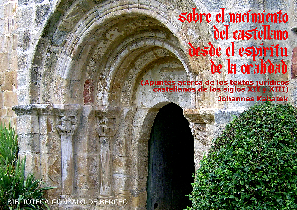 Argente, Joan A. y Lluís Payrató, "Towards a pragmatic approach to the study of languages in contact", en Pragmatics 1, 1991, 465–480. Badía Margarit, Antonio, "La frase de la Primera Crónica General en relación con sus fuentes latinas", en Revista de Filología Española XLII, 1958-59, 179–210. Bello Rivas, María Xesús, A traducción galega da ‹Crónica General› entre dependencia e innovación, Tesis de licenciatura, Universidad de Santiago de Compostela, 1995. Böhmer, Heiner, Untersuchungen zur Morphosyntax des frühen Romanischen auf der Iberischen Halbinsel (800–1250), Freiburg 1997. Bühler, Karl, Sprachtheorie. Die Darstellungsfunktion der Sprache, Jena: Gustav Fischer, 1934 (traducción española por J. Marías, Teoría del lenguaje, Madrid, 1950). Cerquiglini, Bernard, Jacqueline Cerquiglini, Christiane Marchello-Nizia y Michèle Perret-Minard, "L’objet ‘ancien français’ et les conditions propres à sa description linguistique", en Jean Claude Chevalier y Maurice Gross (eds.), Méthodes en grammaire française, Paris 1976, 185–200. Chafe, Wallace, Discourse, Consciousness and Time, Chicago: The University of Chicago Press, 1994. Company Company, Concepción, La frase sustantiva en el español medieval. Cuatro cambios sintácticos, México: UNAM, 1992. Coseriu, Eugenio, "Determinación y entorno. Dos problemas de una lingüística del hablar", en Romanistisches Jahrbuch VII, 1955-56, 29–54. – Sincronía, diacronía e historia. El problema del cambio lingüístico, Montevideo 1957, 3ª ed., Madrid: Gredos, 1978. – "Sprachliche Interferenz bei Hochgebildeten", en Herbert Kolb y Hartmut Lauffer (eds.), Sprachliche Interferenz: Festschrift für Werner Betz, Tübingen: Niemeyer, 1977, 77–100. – Competencia lingüística. Elementos de la teoría del hablar, Madrid: Gredos, 1992. Cotrait, René, Histoire et poésie: Le comte Fernan Gonzalez. Histoire et légende, Grenoble: Allier, 1977. Fleischman, Suzanne, "Philology, Linguistics, and the Discourse of the Medieval Text", en Speculum 65, 1990, 19–37. Font Rius, José María, "La recepción del Derecho Romano en la Península Ibérica durante la Edad Media", Société d’Histoire du Droit et des Institutions des Anciens Pays du Droit Écrit. Recueil de Mémoires et Travaux, Montpellier, 6, 1967, 85–104. Foucault, Michel, L’archéologie du savoir, Paris: Gallimard, 1969. García-Gallo, Alfonso, "Una colección de fazañas castellanas del siglo XII", AHDE 11, 1934, 522–531. – "Aportación al estudio de los fueros", AHDE XXVI, 1956, 387–446. – Manual de historia del derecho español, 2 vols.: 1.: El origen y la evolución del derecho, 2.: Antología de fuentes del antiguo derecho, 4ª ed., Madrid: Agesa, 1971. Gimeno Menéndez, Francisco, Sociolingüística histórica (siglos X-XII), Madrid: Visor, 1995. Givón, Talmy (1979): "From discourse to syntax: Grammar as a processing strategy", en Talmy Givón (ed.): Discourse and Syntax, New York: Academic Press, 1979. Goody, Jack e Ian Watt, "The Consequences of Literacy", en Jack Goody (ed.), Literacy in Traditional Societies, Cambridge 1968, 27–68. Guilarte, Alfonso M., Castilla, país sin leyes, Valladolid: Ambito, 1989. Iakubinski, Lev, "Sobre el discurso dialógico", en Emil Volek (ed.), Antología del formalismo ruso y el grupo de Bajtin, vol. II, Madrid: Fundamentos, 1995, 171–188 (versión original en L. V. Shcherba, Russkaia rech’, Petrogrado, 1923). Jackson, Gabriel, Introducción a la España medieval, Madrid: Alianza, 1974 (versión original: The Making of Medieval Spain, London: Thames& Hudson, 1972). Kabatek, Johannes, "‘Wenn Einzelsprachen verschriftet werden, ändern sie sich’. Gedanken zum Thema Mündlichkeit und Schriftlichkeit", en Gabriele Berkenbusch y Christine Bierbach (eds.), Soziolinguistik und Sprachgeschichte: Querverbindungen. Brigitte Schlieben-Lange zum 50. Geburtstag von ihren Schülerinnen und Schülern überreicht, Tübingen: Narr, 1994, 175–187. – Die Sprecher als Linguisten. Interferenz- und Sprachwandelphänomene dargestellt am Galicischen der Gegenwart (Beihefte zur Zeitschrift für Romanische Philologie, Vol. 276), Tübingen: Niemeyer, 1996. Koch, Peter y Wulf Oesterreicher, "Sprache der Nähe – Sprache der Distanz. Mündlichkeit und Schriftlichkeit im Spannungsfeld von Sprachtheorie und Sprachgeschichte", en Romanistisches Jahrbuch 36, 1985, 15–43. – Gesprochene Sprache in der Romania: Französisch, Italienisch, Spanisch, Tübingen: Niemeyer, 1990. Lo Codi en castellano. Según los manuscritos 6416 y 10816 de la Biblioteca Nacional, ed. y estudio preliminar de Juan Antonio Arias Bonet, Madrid: Universidad Complutense 1984. Márquez-Sterling, Manuel, Fernán González, First Count of Castile: The man and the legend, Mississippi: University of Mississippi, 1980. Menéndez Pidal, Ramón, Orígenes del español. Estado lingüístico de la Península Ibérica hasta el siglo XI, 10a edición (según la tercera muy corregida y adicionada de 1950), Madrid: Espasa Calpe, 1986 (1ª ed. Madrid 1926). – Reliquias de la poesía épica española, 2ª ed. Madrid: Gredos, 1980. Neumann-Holzschuh, Ingrid, Untersuchungen zur Konstituentenabfolge in altkastilischen Chroniken des 13., 14. und 15. Jahrhunderts unter besonderer Berücksichtigung der Subjekt-Verb-Anordnung, Habilitationsschrift, Bamberg, 1993. – "Spuren von Mündlichkeit in der Syntax altkastilischer Texte", Iberoamericana 2/54, 1994, 49–72. Nichols, Stephen G., "Introduction: Philology in a Manuscript Culture", en Speculum 65, 1990, 1–10. Oesterreicher, Wulf, "El español en textos escritos por semicultos. Competencia escrita de impronta oral en la historiografía indiana", en Jens Lüdtke (ed.), El español de América en el siglo XVI, Frankfurt: Vervuert, 1994, 155–190. Riehl, Claudia Maria, "Der narrative Diskurs und die Verschriftlichung der Volkssprache", in: Wolfgang Raible (ed.): Kulturelle Prozesse auf Schrift und Schreibproz