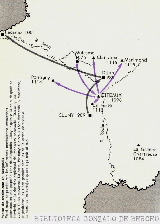 Tanto si los primeros padres abandonaron Molesme a causa de su decadencia monástica como si no, lo que ciertamente no tuvieron intención de dar era publicidad a sus quejas. Pedían solamente vivir su tipo de vida separados del mundo e ignorados por él. Pero, veinte años después, cuando Citeaux comenzó a multiplicarse y a llevar a cabo fundaciones, inevitablemente aparecieron como rivales y críticos del monacato tradicional. El mero hecho de pretender seguir exactamente la regla que tanto ellos como los monjes negros profesaban, era causa de fricción y un pequeño incidente se convirtió en una gran controversia que pronto se tradujo en una de las mayores disputas de la historia monástica, disputa que alcanza las mayores profundidades de la vida espiritual y en la que cada lector se encuentra inclinado hacia un bando u otro, del mismo modo que el estudiante de filosofía se encuentra insensiblemente atraído por las enseñanzas de Platón o de Aristóteles. Lo que podía haber sido una latente pero aburrida porfía ascendió al nivel de perenne división de ideales gracias al carácter y genio de los defensores de cada parte. El incidente que encendió la mecha fue en sí mismo un asunto personal e insignificante. Bernardo, en los primeros años de abad de Clairvaux, tenía entre los monjes a un joven pariente cuyos padres en su niñez habían prometido enviarle a Cluny. La vida en Clairvaux resultaba demasiado dura para él, y huyó a Cluny, cuyo gran prior acogió con inmensa alegría al pródigo. Bernardo, ofendido como hombre y como monje, le escribió una carta apasionada, que indudablemente esperaba que circulara por Cluny, en la que comparaba la grata, fácil y lujosa vida en la gran abadía con la escasez y dureza de Clairvaux. Todo eso llegó a oídos del joven abad de Cluny, Pedro, más tarde conocido con el sobrenombre de el Venerable, que era un excelente oponente de Bernardo. Así como los dos eran aristócratas, gobernadores natos de hombres y celosos monjes, Pedro era conciliador, moderado, amable, considerado y conservador, mientras que Bernardo era ardiente, provocador, violento, sin compromisos y revolucionario. Mientras Pedro predicaba discreción y caridad, Bernardo exigía verdad y sacrificio. Pedro defendía el modo de vida cluniacense porque condescendía con la debilidad humana y mitigaba las reglas para que las almas pudieran salvarse; Bernardo le replicaba repitiendo las exigencias de Cristo que superaban las pretensiones de una discreción meramente humana, y citaba a los monjes y santos de épocas pasadas y los claros preceptos de la regla. Luego, envenenado por su propia retórica, pasó a dar un panorama altamente vívido de la vida cluniacense subrayando la degeneración de su aspecto monástico. La lucha prosiguió durante mucho tiempo, pero cuando los dos se encontraron se dieron cuenta de su respectiva sinceridad y nobleza de carácter. Pedro, por sus serios intentos de reformar Cluny, admitía la verdad de los escritos de Bernardo, mientras que éste explícitamente reconocía la buena fe y virtudes de Pedro; es más, el título de «venerable» aparece por primera vez en las cartas de Bernardo. Sin embargo, la controversia sigue en vigor, y bajo una forma u otra, estará siempre viva. Así como podemos reconocer que Bernardo confundía la ética con la estética, condenaba a la vez el lujo y la belleza y exigía más de lo que un ser humano normal puede dar, también debemos admitir que Pedro llamaba caridad a la indulgencia y no consiguió (por lo menos en sus primeros intentos) dar a sus monjes una idea clara de cómo aceptar enteramente la llamada de Cristo. Los historiadores de hoy se hallan tan divididos acerca de sus opiniones sobre Cluny y Citeaux como lo estaban los contemporáneos de los dos grandes abades. La magnífica arquitectura, escultura y cerrajería de las inmensas iglesias cluniacenses, el esplendor de su liturgia y canto, y el humano y moderado punto de vista de Pedro el Venerable, encarnan para muchos la belleza de la santidad medieval. Suger, el eminente abad de Sto Denis de París, sabio estadista e incomparable patrono de las artes, como Pedro blanco al principio de la más pesada artillería de Bernardo y más tarde receptor de sus dulces palabras de amistad, no era cluniacense, pero su interpretación de la regla y su actitud ante el arte y las cosas bellas en relación con el servicio de Dios diferían muy poco de Cluny. En el limitado terreno de la estética, él y Bernardo se enzarzaron en otra controversia que aún perdura también. Para Suger la belleza del color y la forma y sobre todo la belleza de la luz a través del cristal o reflejada por las joyas, era el primer peldaño de la escalera que conduce a la luz eterna, a Dios mismo, y al edificar una casa de Dios sólo vale lo más precioso, lo más bello. Para Bernardo todo eso es hipocresía o, en el mejor de los casos, una política conveniente a los laicos, no a los monjes, porque para los monjes el oro y las piedras preciosas son anatema; ellos oran al Dios invisible sin la ayuda -o las distracciones- de las cosas brillantes y bellas. He aquí a Bernardo con la visión de Cluny ante su memoria: