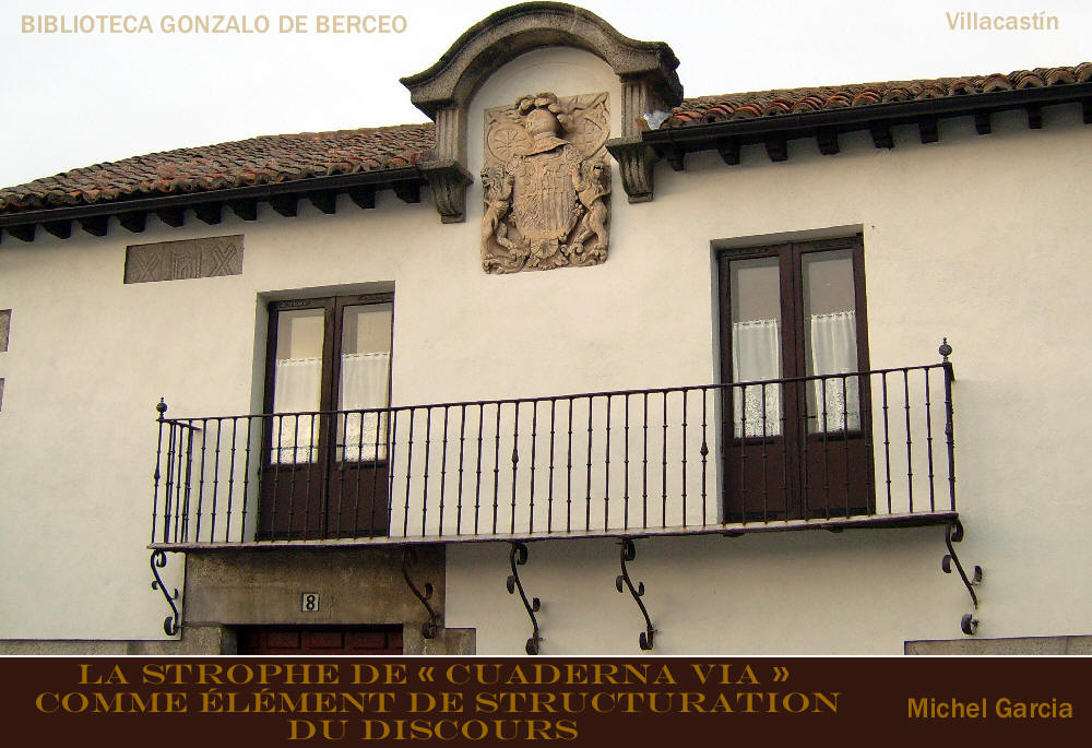 Curieuse formule, en vérité, que celle de cuaderna vía qui retire deux termes d'un contexte sans lequel ils cessent d'être compréhensibles. Le vers commente et prolonge les formules précédentes : mester fermoso et que es de clerecía. Chaque mot mérite qu'on s'y arrête :