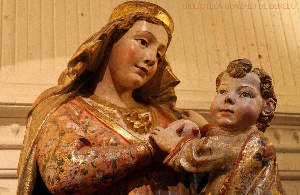 Arboles y flores, pájaros cantores, todos los elementos necesarios son manejados por Berceo, que explica después su sentido no erótico, sino cristiano: el prado es la Virgen; las flores, los diversos nombres que se le han dado a la madre de Cristo; las cuatro fuentes, los cuatro evangelistas, por ella inspirados. En los Milagros, el poder de la Virgen adquiere características en verdad sorprendentes. María, en efecto, salva del infierno a ladrones, borrachos y monjas embarazadas; resucita a quienes fallecidos en pecado mortal, vueltos de nuevo a la vida y convenientemente arrepentidos, terminan por ir a la gloria; se habla de los peligros del intelectualismo y de las ventajas de la ignorancia; se llega a los límites del subconsciente en un milagro en que María, celosa, escamotea de entre los brazos de la esposa a un recién casado en la noche de bodas; se maneja el antisemitismo; la Virgen interviene incluso para arreglar las finanzas de un comerciante en apuros. De campesinos a obispos, todo el espectro de la sociedad medieval aparece dominado por los poderes sobrenaturales de María, abogada y defensora, pero que también sabe castigar cuando es preciso. El propósito, más allá de supuestas ingenuidades, no es otro que el de la preservación del orden establecido, invocando la posibilidad del milagro cotidiano y de una vida eterna.