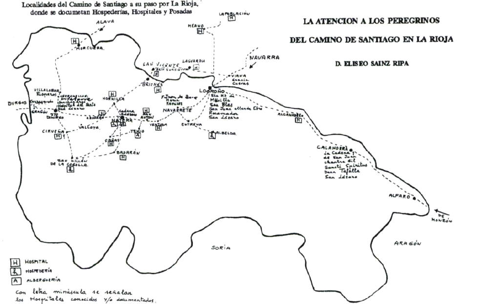 Debe observarse que es junto al Ebro de Logroño, el Cidacos de Calahorra, el Najerilla de Nájera y el Oja de Santo Domingo donde surgen el mayor número de hospitales a una y otra ribera de los mismos. Los puentes no eran seguros y las crecidas frecuentes.