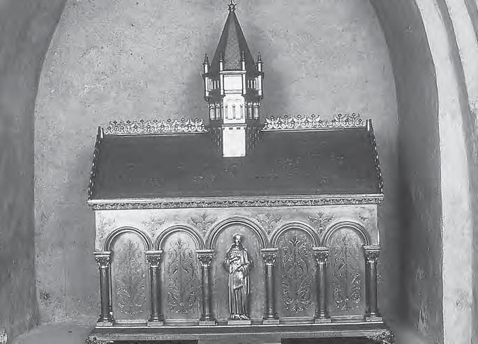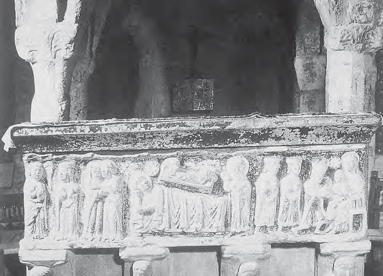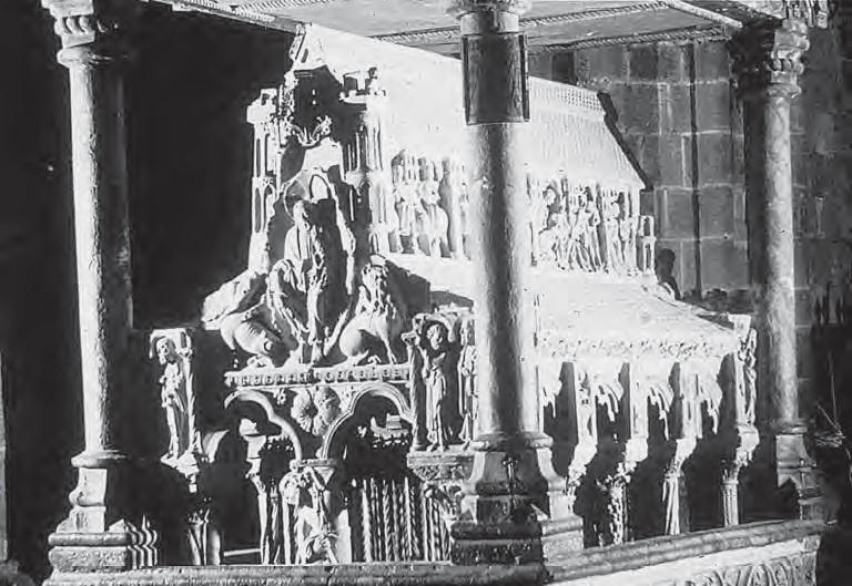 El sepulcro de un santo ha constituido a lo largo de estos veinte siglos del Cristianismo y lo sigue siendo en la actualidad, el lugar principal donde este recibe culto, se veneran sus restos y se acude a su intercesión. Desde los primeros siglos es sabido que los fieles adoptaron la costumbre de reunirse espontáneamente junto a los sepulcros de los primeros mártires, especialmente para conmemorar su aniversario, en su «dies natalis». El obispo participaba en estas ceremonias garantizando con su presencia su legitimidad. Sobre la tumba se erigía un altar y pronto comenzó a monumentalizarse su espacio, destacándose el sepulcro del mártir de todos los demás enterramientos del lugar[1]. Un ejemplo temprano nos lo proporciona la necrópolis del Vaticano en la que las excavaciones arqueológicas han demostrado que, al menos, desde mediados del siglo II, el sepulcro del apóstol Pedro había sido monumentalizado por un trofeo, un monumento conmemorativo consistente en una mesa de mármol apoyada sobre dos columnas y adosada por detrás al muro rojo del cierre del espacio de inhumación, provisto a su vez de un nicho. Se trata del testimonio más antiguo del culto que la Iglesia de Roma ha profesado al Apóstol[2]. A partir de ahí podemos seguir la evolución progresiva de su culto a través de las sucesivas transformaciones que sufre este trofeo a lo largo de los siglos III y IV. Así en el siglo III, a causa de algún deterioro del muro rojo, por motivos que desconocemos, se procedió a su reparación y embellecimiento. El trofeo quedó transformado en una especie de edículo por dos muros de sostenimiento perpendiculares al muro rojo y sobre él se dispuso una techumbre. El interior se reviste de placas de mármol gris y el suelo se cubre de mosaicos de cubos blancos y negros. Sobre él construirá Constantino en el siglo IV la primera basílica en honor del Apóstol, procediéndose también entonces a una nueva monumentalización del primitivo trofeo, ahora mediante la «confessio», una construcción ornamental que lo encuadraba haciéndolo más ostensible. Sobre cuatro columnas torsas se disponen dos arcos de medio punto que se cruzan en el medio de donde colgaba la corona de oro que fue ofrecida por el Emperador y su madre Santa Elena. Dos columnas más se situaban detrás, una a cada lado, y bellas cortinas colgaban de los espacios de los intercolumnios tal como reproduce el relicario Samager datado en el siglo V (Museo de Venecia). Los cuatro lados se cerraban mediante una balaustrada baja de bronce, abierta por delante. Muchas otras reformas, todas ellas conducentes al embellecimiento de la «confessio» constantiniana se llevaron a cabo a lo largo de la Edad Media, permaneciendo siempre la tumba apostólica en lugar inalterable, incluso también cuando en el siglo XVI se procedió a la erección de la nueva basílica vaticana. Un proceso similar lo encontramos en Santiago de Compostela donde también las excavaciones arqueológicas llevadas a cabo en el subsuelo de la catedral, a fines del siglo XIX, sacaron a la luz los vestigios de un mausoleo romano del siglo I, en el que había sido depositada la supuesta tumba del apóstol y los fragmentos de un mosaico de pavimento de color blanco y negro, fechados hacia el año 200 y que formarían parte de las reformas emprendidas en esos años en la cámara sepulcral[3]. Ello unido al altar del siglo I erigido sobre la tumba apostólica y que afortunadamente ha llegado hasta nosotros evidencia todos los síntomas de una temprana monumentalización del sepulcro del apóstol, siglos antes de su invención. A raíz de ésta, a principios del siglo IX, Alfonso II construirá la primera basílica dedicada al apóstol, incluyendo el edículo del sepulcro en su cabecera el cual permanecerá inalterable también a lo largo de las sucesivas basílicas levantadas sobre este, la de Alfonso III el Magno, y la románica de fines de siglo XI, auspiciada por el obispo Diego Peláez. Lo mismo ha ocurrido en otras numerosas iglesias y monasterios surgidos sobre una tumba santa como es el caso de Saint Martín de Tours, San Marcial de Limoges, Santa Foy en Conques o San Sernín en Toulouse, por mencionar los más afamados centros de peregrinación jacobea medieval. Un hito fundamental en el desarrollo del culto a los sepulcros de los santos se va a producir en toda Europa a partir del siglo VII cuando el reconocimiento oficial por parte de la Iglesia de la santidad de un individuo se sancione mediante el rito de la «elevatio corporis»[4]. Este rito consistía precisamente en la exhumación del cuerpo santo de su primitiva tumba normalmente modesta para ser depositado en un nuevo sepulcro más suntuoso, de acuerdo con la dignidad y la veneración a la que desde entonces el santo se hacía acreedor. Existía la mentalidad de que cuanto más ricamente se hubiera ornado una tumba o sepulcro santo, más dignas de veneración eran sus reliquias y a la inversa. Un santo que no dispusiera de una tumba adornada se consideraba menos digno de veneración[5]. La ceremonia sólo podía ser autorizada por el obispo, quien normalmente la presidía y se celebraba con toda solemnidad en presencia del rey, de la comunidad monástica o de clérigos y un gran número de fieles, además de los obispos de otras diócesis convocados a tal fin. Los restos del santo eran lavados cuidadosamente y envueltos en un nuevo lienzo de tela fina de hilo o de seda y era depositado en un nuevo sarcófago o relicario. Generalmente se trasladaba además de lugar a otro más visible dentro del templo, o incluso a una nueva iglesia. Por mencionar un ejemplo, puede servirnos el caso de San Millán de la Cogolla, cuya «elevatio corporis» tuvo lugar el 13 de abril de 1030. El cuerpo del santo fue exhumado de su primitivo sepulcro para ser depositado en una nueva arqueta de plata y fue trasladado de la cueva rupestre donde había sido inhumado, al altar del presbiterio de la iglesia mon